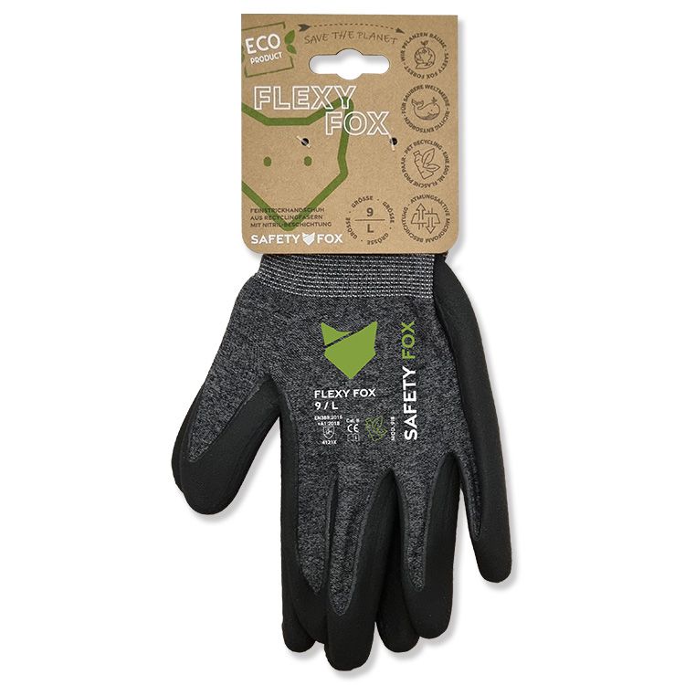 Jedes Paar Safety Fox Handschuhe enthält eine recyclete 500ml PET Flasche!